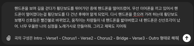 자 이제 ChatGPT 에게 가사를 주문해보겠습니다